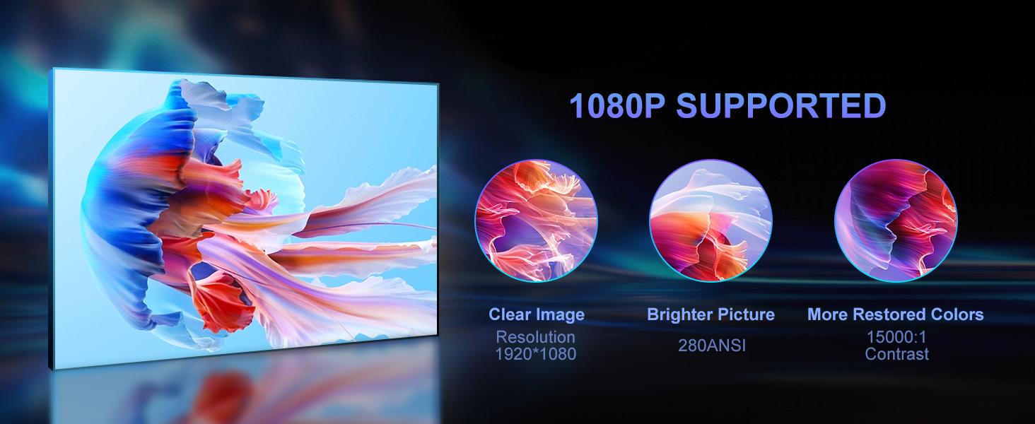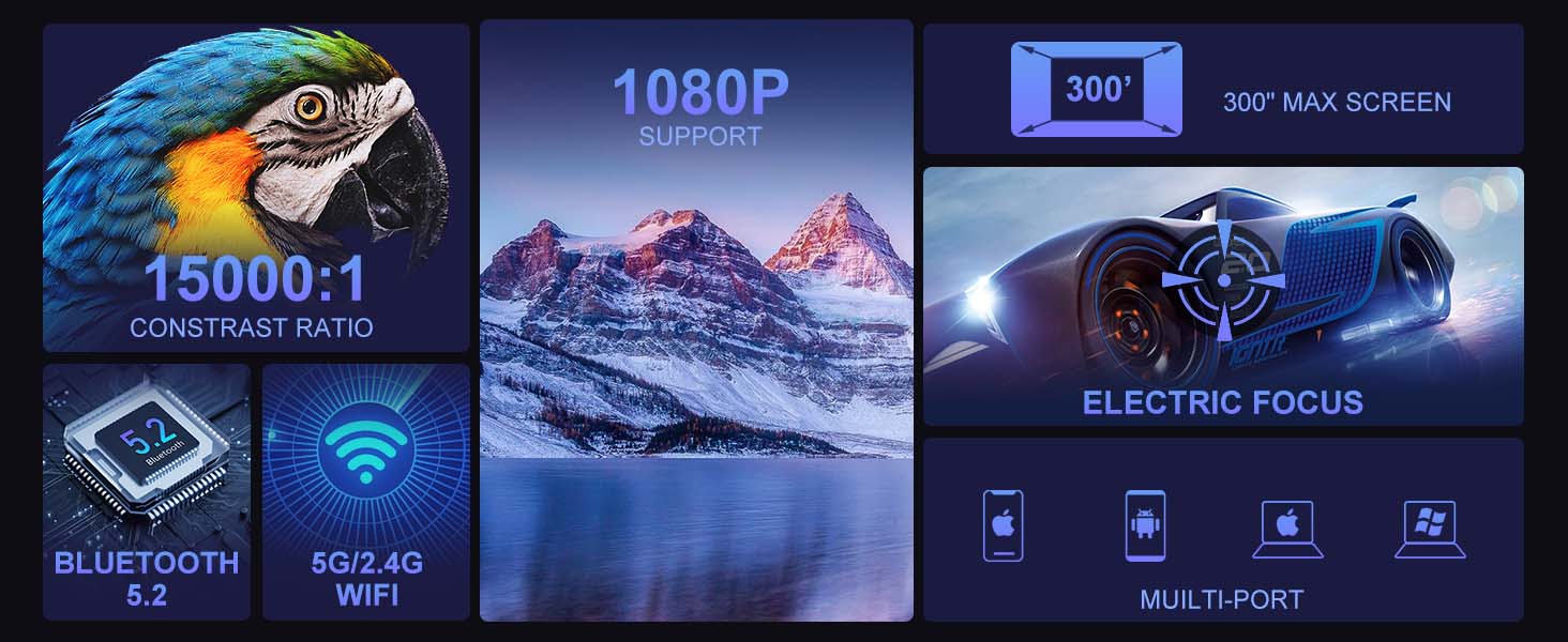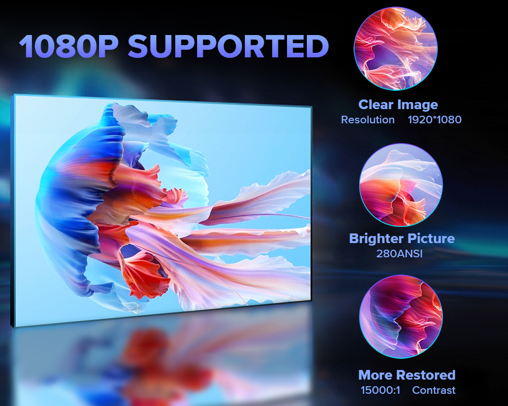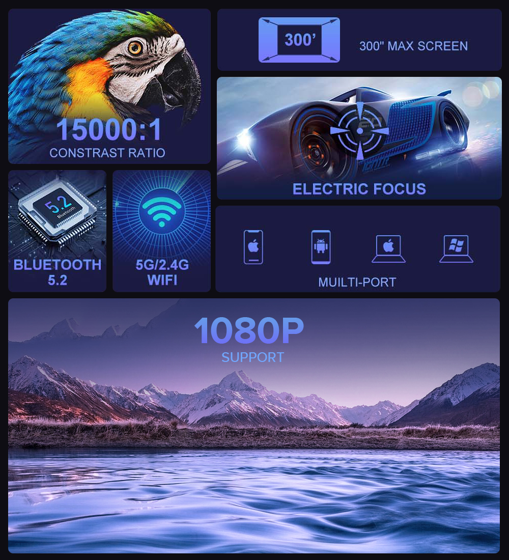Grundläggande funktioner: Stöd keystone-korrigering/enknappsfokus/5G Wifi/Bluetooth 5.2/multi-screen interaktion/mobiltelefon trådlös samma skärm/smart röst
